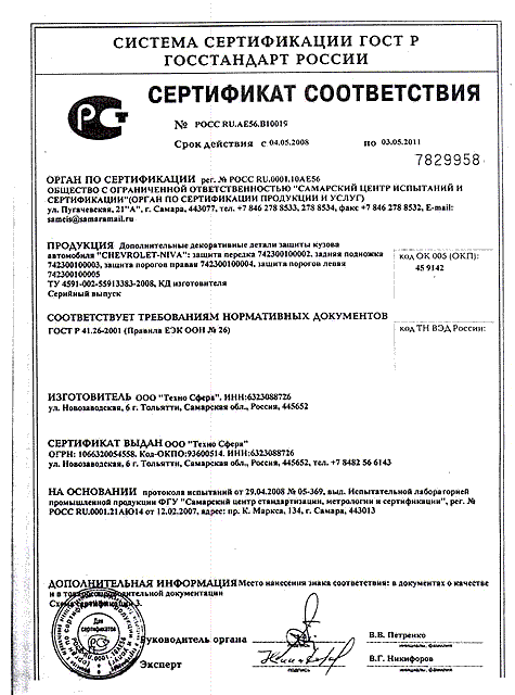 Название изображения: Сертификат на навесное оборудование от салона "Нижегородец"