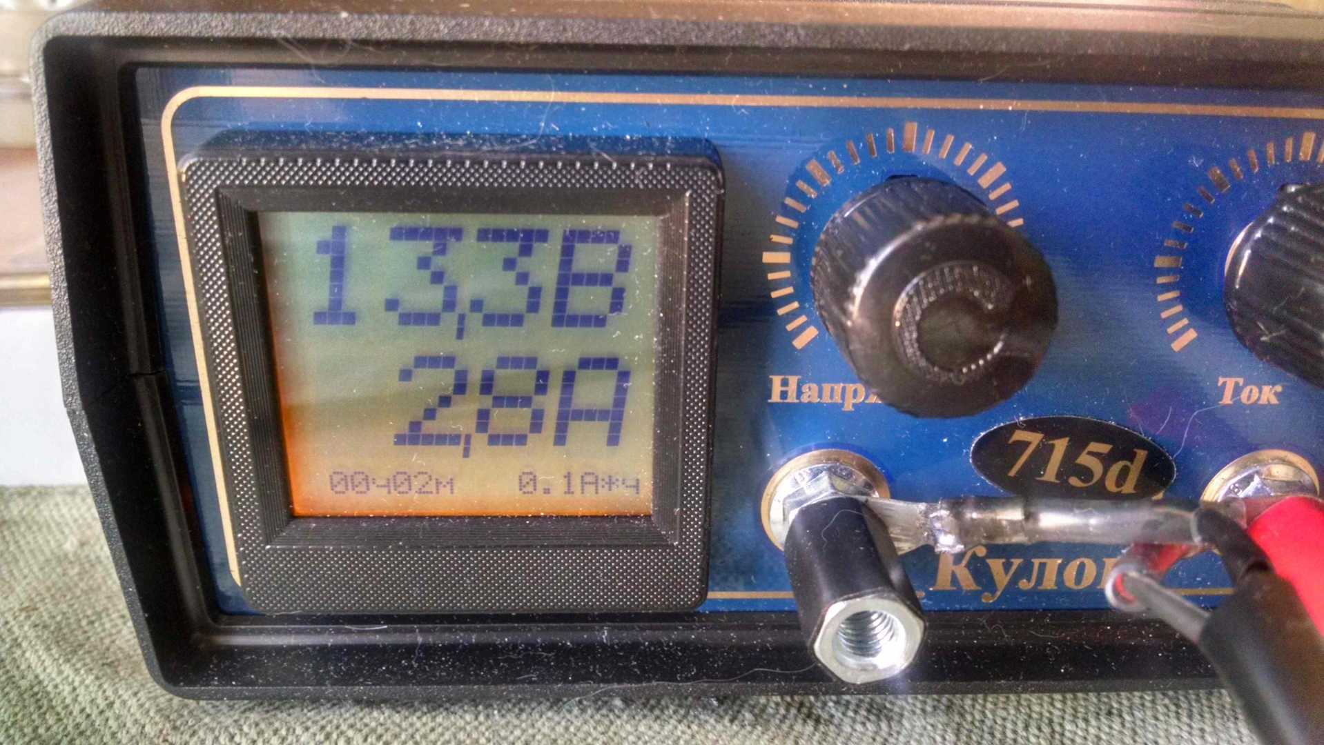 | Описание: | Индикация напряжения и тока по питанию +12В (на конт.87-30 реле) в режиме ДХО Источник питания ЗУ Кулон 715 (15В 15А) |