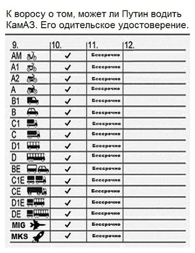 водительское удостоверение Путина