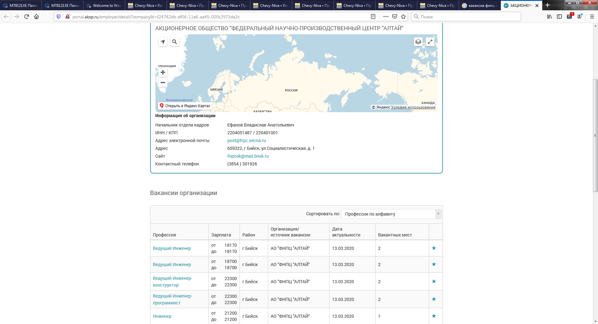 вакансии ФНПЦ АЛТАЙ