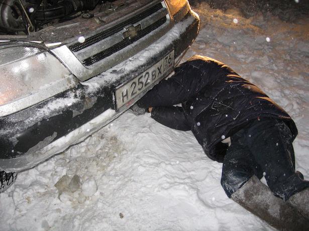 Ночью, за городом, в 25 градусный мороз сорвало нижний патрубок