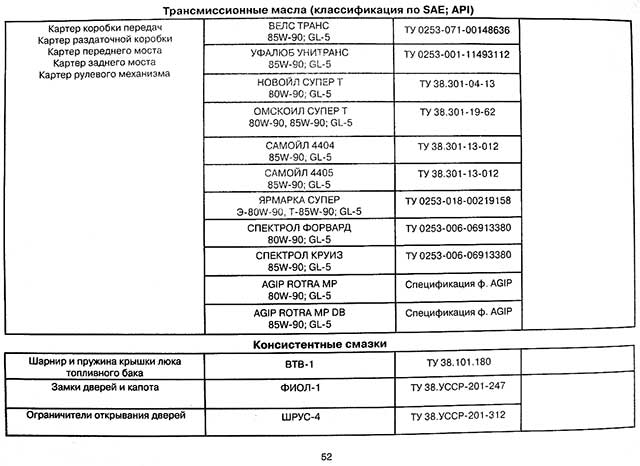 Название изображения: Таблица рекомендуемых масел