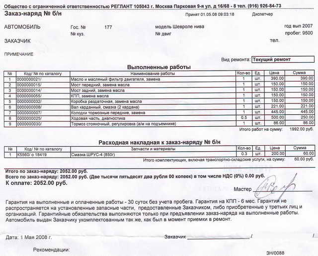 Название изображения: Заказ-наряд 10000 км - Нива-Центр