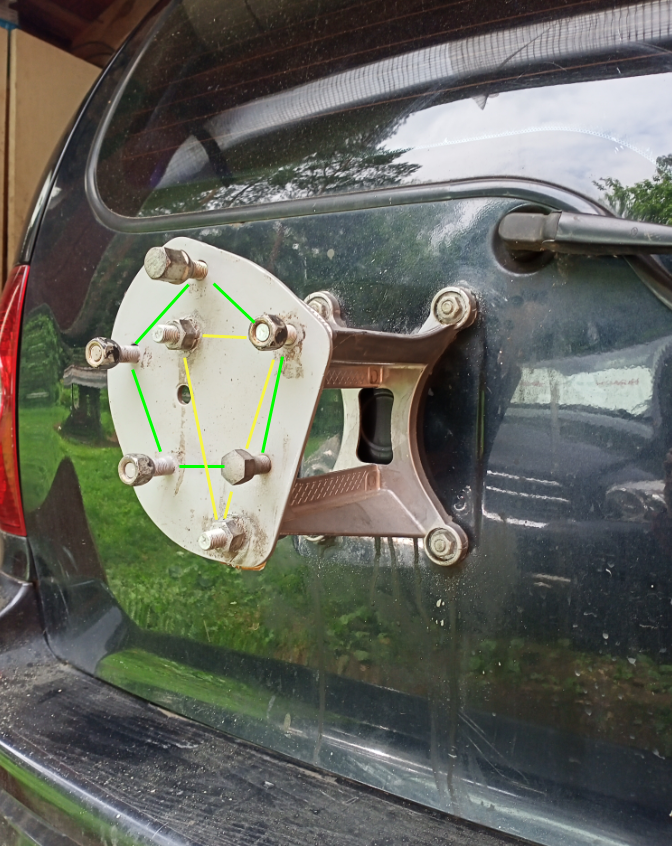 зеленый контур - крепление колеса на пластину. Желтый - арепление пластины на кронштейн