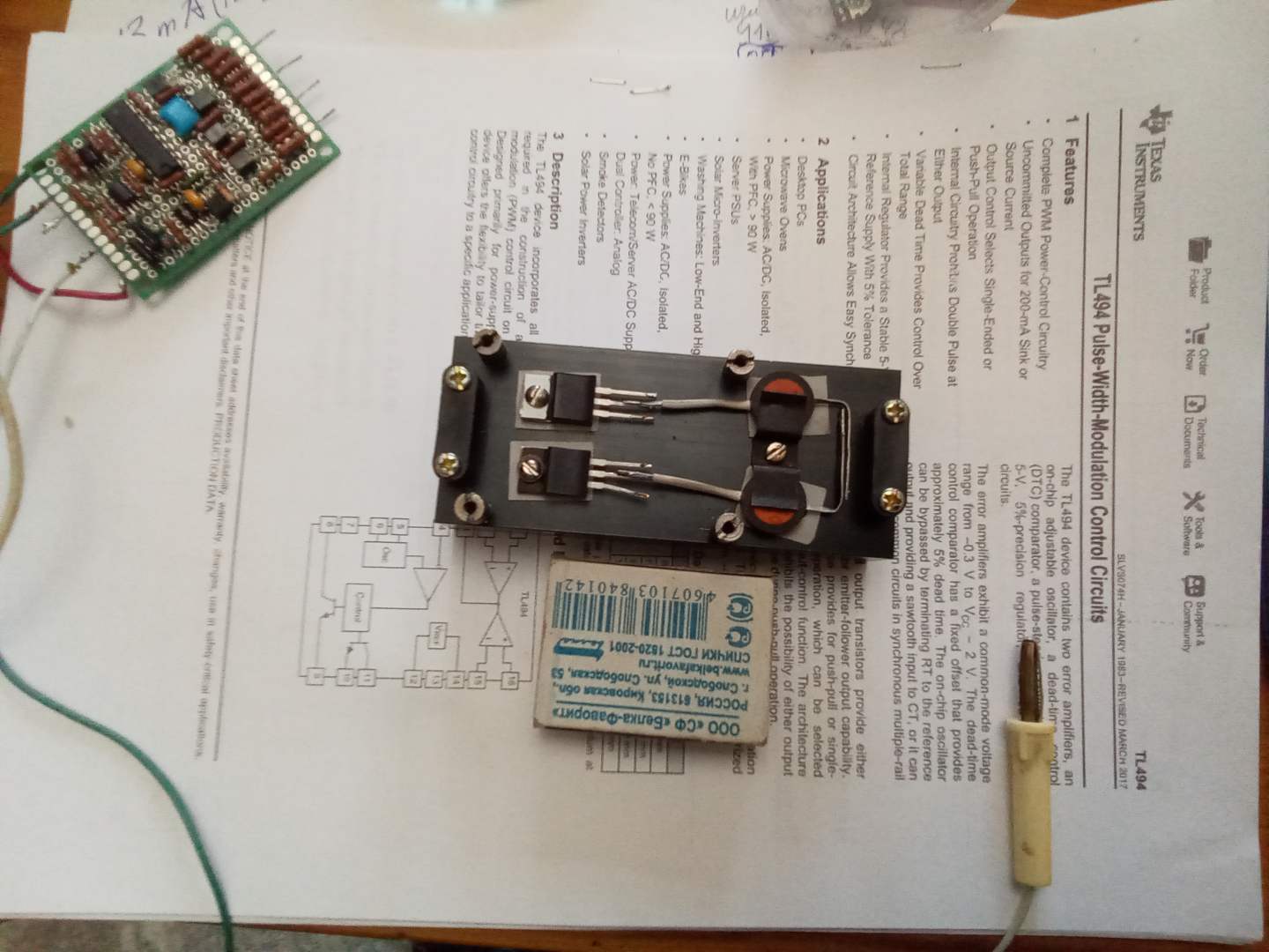 | Описание: | Как и всегда, нашлась подходящая люминьтьевая железяка. Японистая, в руках приятно держать. Так тому и быть, поиграю. Не зря же на макетке пробовал. Tl494 на этот раз. Должно же быть разнообразие. |